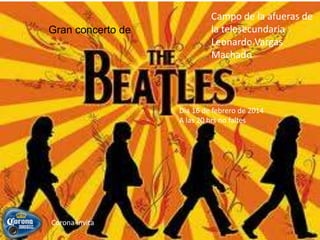 El concierto se llevará a cabo el 16 de febrero de 2014 a las 8 pm en el campo de la telesecundaria Leonardo Vargas Machado. Todos están invitados a asistir al gran concierto que tendrá lugar.