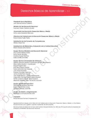 Este documento presenta la segunda versión de los Derechos Básicos de Aprendizaje (DBA) en matemáticas y lenguaje para grados 1° a 11°, y la primera versión de los DBA en ciencias naturales y ciencias sociales para los mismos grados. Explica que los DBA son aprendizajes estructurantes que deben adquirir los estudiantes y que han sido sometidos a discusión pública y revisión con aportes de la comunidad educativa. Finalmente, define los DBA como la conjunción de conocim