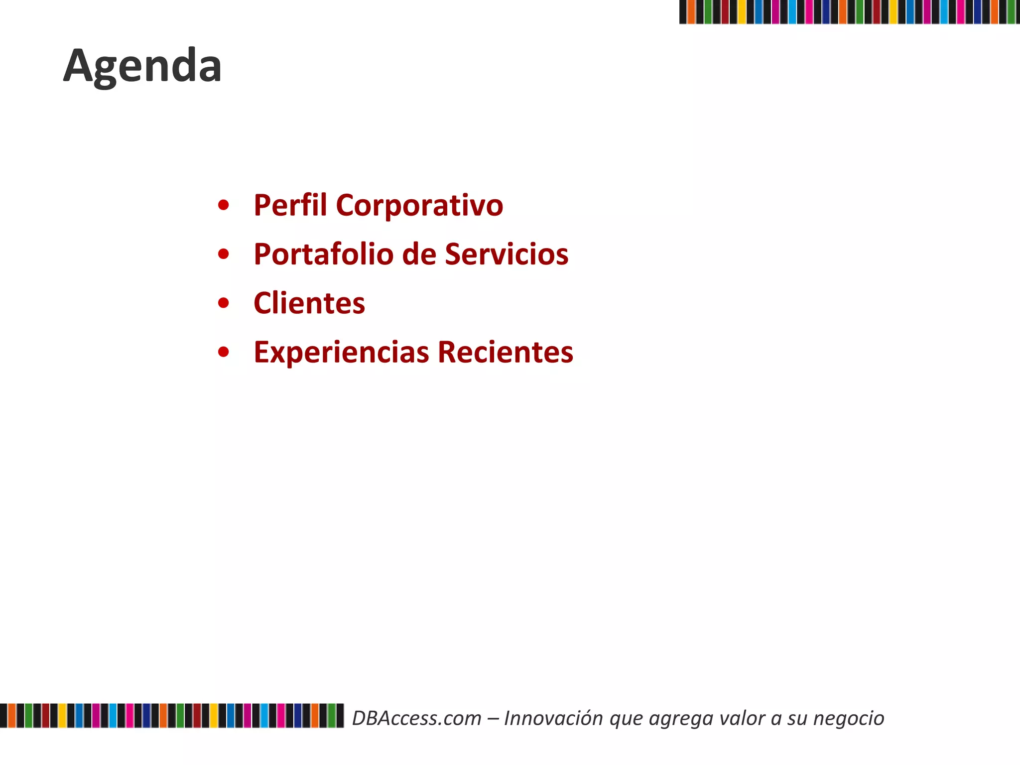 DBAccess es un proveedor global de servicios de innovación tecnológica fundado en 1988 que opera en más de 12 países. Ofrece una variedad de servicios de TI, incluyendo el desarrollo de soluciones, análisis de procesos empresariales, gestión de contenidos, arquitectura empresarial, infraestructura, pruebas y calidad. DBAccess se enfoca en agregar valor al negocio de sus clientes a través de la innovación y el emprendimiento.