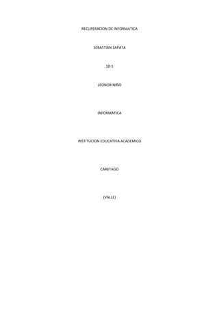 El documento habla sobre la informática. Define informática como el procesamiento automático de información mediante ordenadores. Explica que la informática reúne técnicas desarrolladas por el hombre para potenciar la memoria, el pensamiento y la comunicación. Además, cubre áreas como la gestión, el almacenamiento de datos, el control de procesos y más. Finalmente, menciona que la primera máquina programable fue el computador Z3 diseñado por Konrad Zuse en 1941.