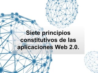 El documento describe la evolución de la Web 1.0 a la Web 2.0, resaltando 7 principios clave de las aplicaciones Web 2.0 como aprovechar la inteligencia colectiva de los usuarios, modelos de programación más ligeros y experiencias enriquecedoras para los usuarios en múltiples dispositivos. También analiza conceptos como folksonomías, creative commons y colaboratorios, que permiten la construcción colectiva y compartida del conocimiento en la Web 2.0.