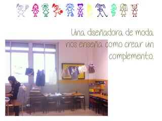 Este documento habla sobre una diseñadora de moda que enseña cómo crear un complemento. La diseñadora comparte su experiencia y conocimientos sobre el diseño de accesorios de moda.