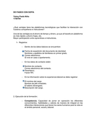 Las plataformas tecnológicas facilitan la interacción entre estudiantes e instructores, ahorrando tiempo y dinero al eliminar el uso de papel. Estas plataformas permiten una mayor participación y ofrecen registros de datos personales, experiencia laboral, y detalles sobre la formación y certificación. La plataforma de gestión de aprendizaje guía a los usuarios a través de tableros de discusión, foros sociales, secuencias y el diligenciamiento de información.