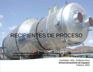 Este documento presenta información sobre la norma ASME VIII para el diseño y cálculo de recipientes a presión. Explica los conceptos clave de presión y temperatura de diseño, así como la presión máxima de trabajo permitida. También cubre consideraciones de diseño mecánico para reactores y columnas, incluidos requisitos de alivio de presión, materiales, pruebas e inspecciones.