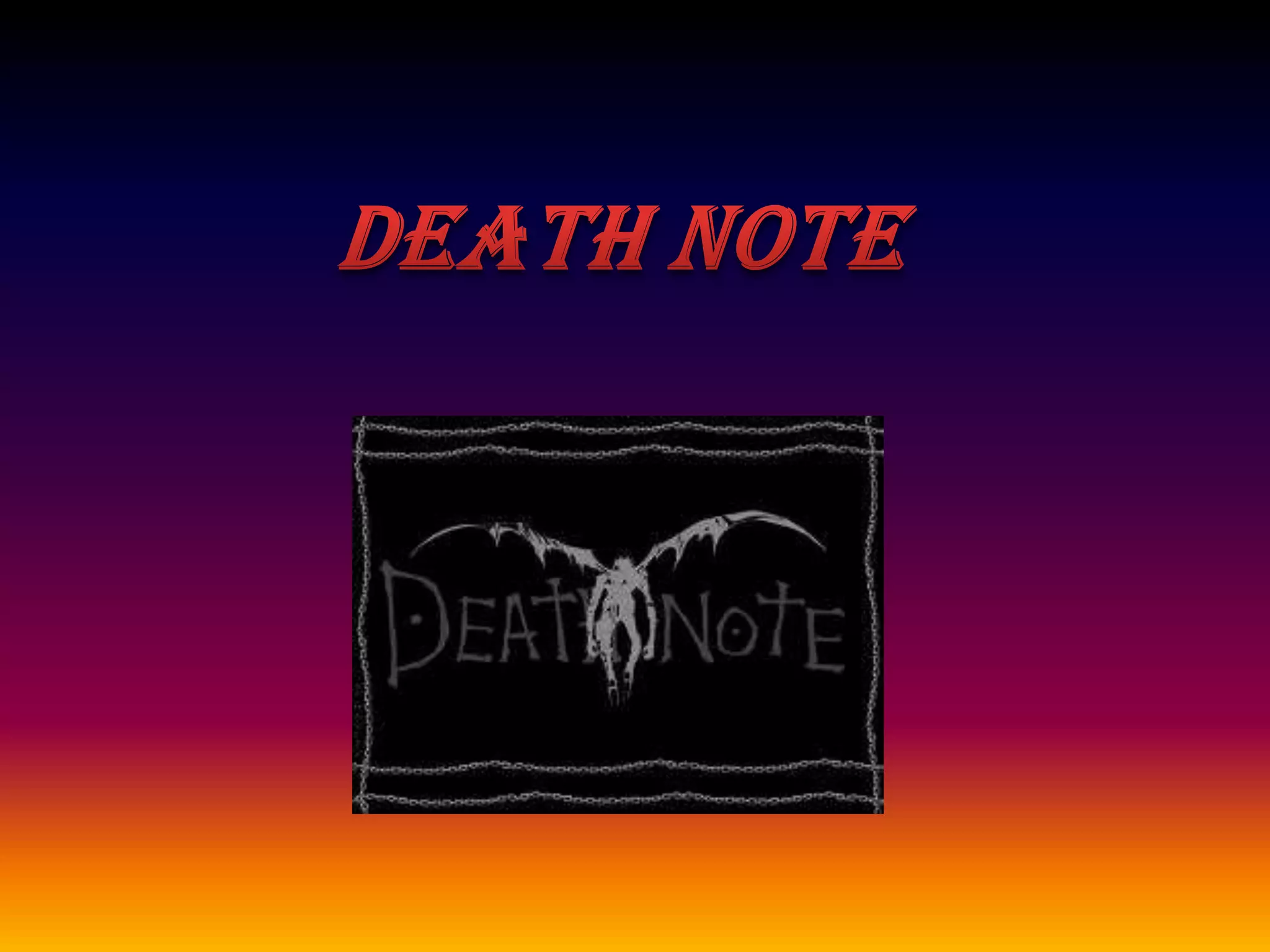 La historia se centra en Light Yagami, un estudiante que encuentra un cuaderno llamado Death Note que le permite matar a personas escribiendo sus nombres. Light intenta eliminar criminales para crear un mundo sin maldad, pero es frustrado por el detective L. Light encuentra el cuaderno sobrenatural Death Note y decide usarlo para acabar con criminales y convertirse en dios de un nuevo mundo sin crimen.
