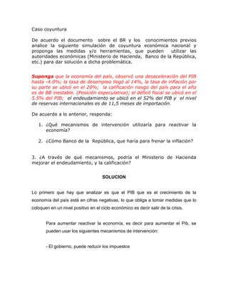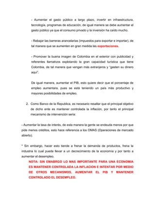 La economía del país está experimentando una desaceleración significativa, con una contracción del PIB del 4%, una tasa de desempleo del 14% y una inflación del 20%. Para reactivar la economía, el gobierno puede reducir impuestos, aumentar el gasto público e invertir en infraestructura, y reducir aranceles para aumentar las exportaciones. El Banco de la República puede elevar las tasas de interés para controlar la inflación. El Ministerio de Hacienda puede aumentar impuestos, reducir gastos y promover importaciones con aranceles para mejor
