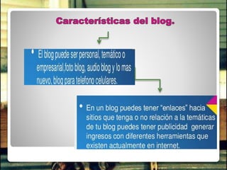 Un blog es una página web que permite a docentes y alumnos hacer presentaciones multimediales de forma sencilla incorporando texto, imágenes, sonido y videos; Flickr es un sitio web para compartir y organizar fotografías de manera colaborativa mediante etiquetas; SlideShare es una aplicación para subir y compartir presentaciones de diapositivas de manera similar a YouTube.