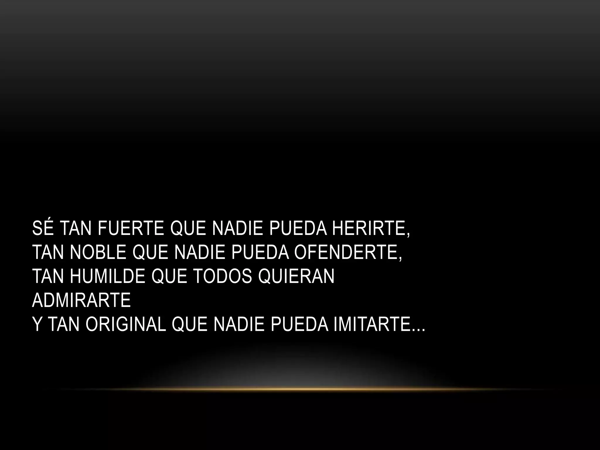 Sé fuerte para que nadie pueda herirte, noble para que nadie pueda ofenderte, humilde para que todos quieran admirarte y original para que nadie pueda imitarte.