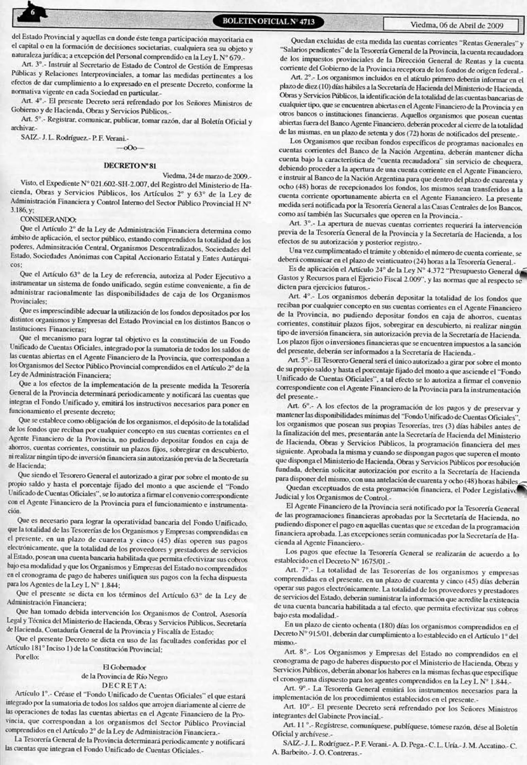 Crea el Fondo Unificado de Cuentas Oficiales L3186