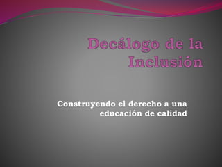 El documento describe los cambios propuestos para construir el derecho a una educación de calidad en Chile. Más de 730 mil estudiantes podrán acceder a una educación gratuita para 2018. Los colegios que opten por la gratuidad recibirán nuevos fondos del Estado, como el Aporte de Gratuidad y la SEP Ampliada. Además, el Estado invertirá alrededor de 145 mil pesos por cada estudiante. Los colegios deberán dejar de seleccionar estudiantes de forma gradual y usar un sistema de admisión ale