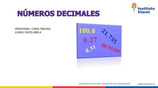 1. La profesora Carol Molina dicta una clase de sexto año sobre números decimales.