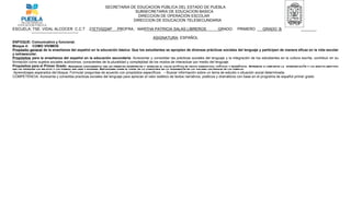 El documento presenta el plan de estudios para la asignatura de español de primer grado de educación secundaria. El objetivo general es que los estudiantes aprecien el valor estético de textos narrativos a través de actividades como lectura y discusión de cuentos de terror. La secuencia didáctica involucra ocho sesiones en las que los estudiantes analizan cuentos, desarrollan un guión para un audiocuento, y graban su propia historia de terror.