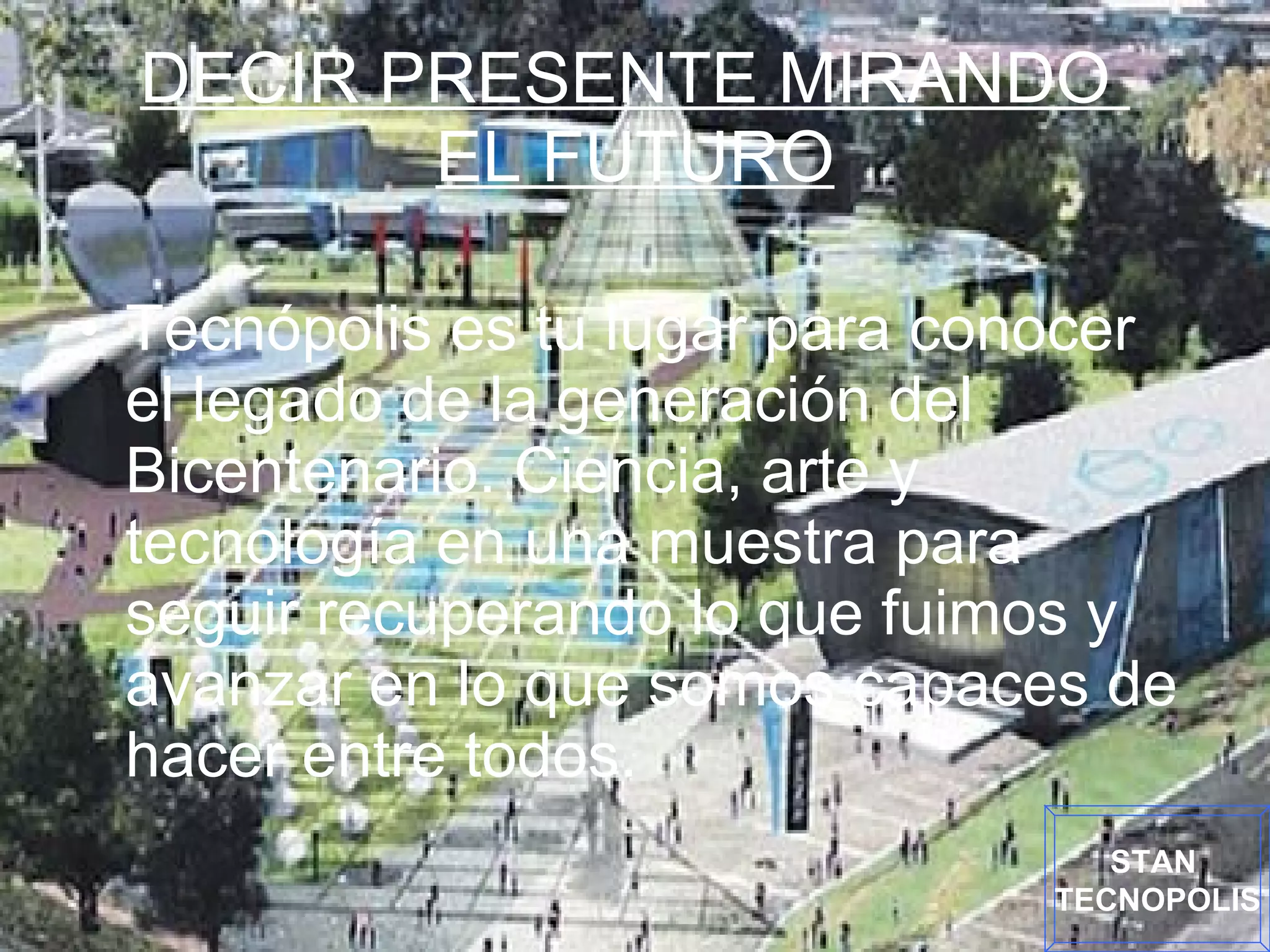 El documento describe Tecnópolis, un espacio dedicado a la ciencia, arte y tecnología que permite a los visitantes explorar el legado de la generación del bicentenario y el futuro de Argentina en el espacio. Incluye diversas experiencias interactivas, como simuladores de vuelo, exposiciones sobre telecomunicaciones y el universo, y actividades con robots y software argentino. Es un lugar para conocer el avance tecnológico y la historia de Argentina en el contexto de su desarrollo espacial y científico.