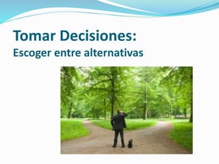 El documento habla sobre la toma de decisiones en administración. Explica que la toma de decisiones es compleja debido a múltiples factores internos y externos. Describe diferentes tipos de modelos (determinísticos, estocásticos, heurísticos, empíricos) que se usan para determinar los posibles resultados de alternativas. También explica conceptos como matriz de pago y valor esperado que permiten analizar problemas de decisión bajo incertidumbre. El objetivo es proveer herramientas para la evaluación sistemática de opciones y