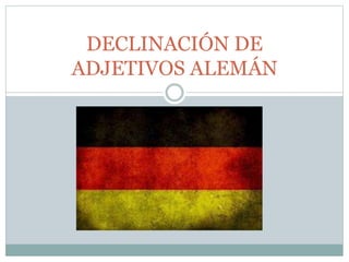 Este documento presenta un curso sobre la declinación de adjetivos en alemán. Explica los tres casos en alemán (acusativo, dativo y nominativo) y sus funciones. Incluye definiciones, ejemplos y ejercicios para cada caso. El objetivo es ayudar a los estudiantes a comprender y aplicar mejor la declinación de adjetivos en alemán.
