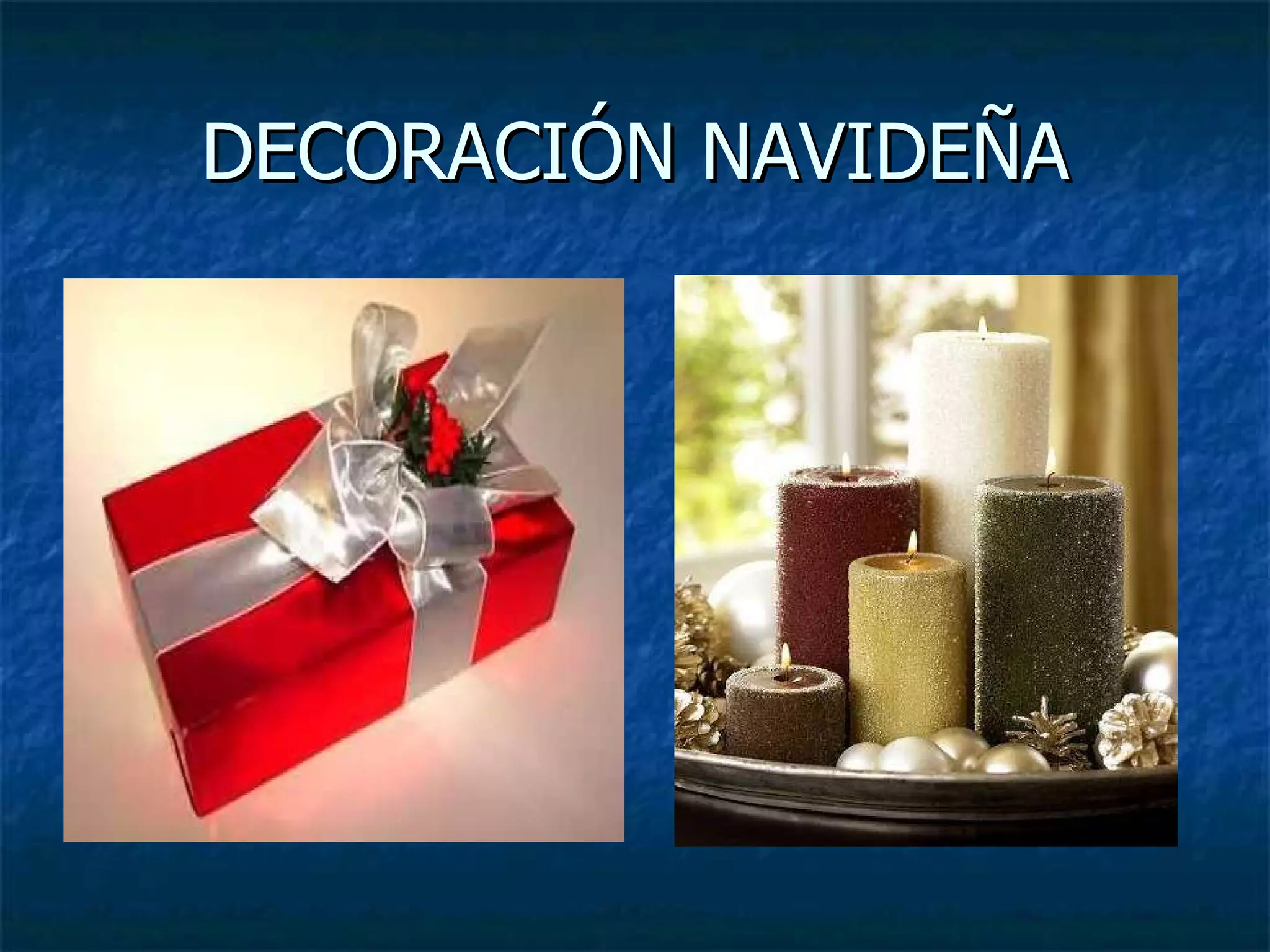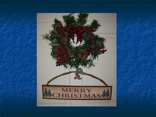 El documento habla sobre varias tradiciones navideñas de decoración como la corona de la puerta, el nacimiento, la flor de pascua, el árbol de navidad y los calcetines. También menciona poner luces en el portátil aunque reconoce que es hortera pero divertido.