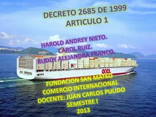 Este documento define términos clave relacionados con el comercio internacional y la aduana. Define más de 30 términos como abandono legal, abandono voluntario, aduana de partida, aduana de paso, agente de carga internacional, almacenamiento, aprehensión, autoridad aduanera, declaración de mercancías, despacho, documento de transporte, exportación, inspección aduanera, importación, y manifiesto de carga, entre otros. El propósito es proporcionar claridad sobre estos conceptos para