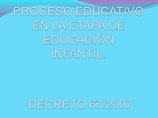 DECRETO 67/2007 Decreto 67/2007de 29 de mayo de 2007 por el que se establece y ordena el currículo del segundo ciclo de la Educación Infantil en la Comunidad Autónoma de Castilla-La Mancha. DECRETO ANEXOS