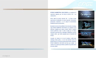 D'Edge Marketing Solutions es una compañía puertorriqueña con experiencia desde 1993 en producir eventos multimedia. Ofrecen una variedad de servicios de marketing, incluyendo diseño gráfico, producción audiovisual, impresión, artículos promocionales e internet marketing, para ayudar a las empresas a comunicar su marca de manera efectiva. Con su experiencia y recursos técnicos, D'Edge Marketing Solutions se presenta como una solución integral para todos los aspectos de la producción y promoción de un evento u operación de marketing.