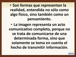 El documento habla sobre conceptos básicos de imágenes digitales como píxeles, resolución, mapas de bits, ruido, color, textura, perspectiva y dimensiones. Explica que las imágenes están compuestas de píxeles con diferentes niveles de gris y cómo se ven afectadas por factores como el ruido y la nitidez. También cubre elementos visuales como líneas, color, textura y volumen que ayudan a crear significado en las imágenes.