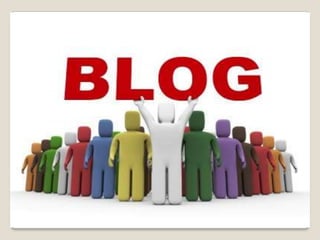 El documento define un blog como un sitio web actualizado periódicamente que recopila cronológicamente artículos de uno o más autores sobre un tema en particular. Explica que los blogs más populares para crear y publicar un blog son Blogger, Bitácoras, Blogalia y MyBlog. Además, detalla algunas de las opciones educativas que ofrecen los blogs tanto para educadores como para estudiantes, como compartir conocimientos, anuncios educativos, enlaces y administración de contenido.