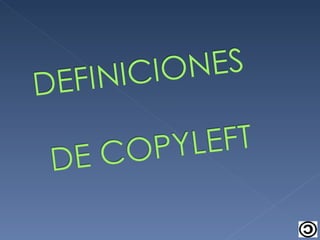 Copyleft es una forma de licenciar software y obras creativas de manera que se garantice que las versiones modificadas o derivadas también se compartan bajo los mismos términos de copyleft, asegurando que siempre permanezcan como software libre. Copyleft otorga ciertos derechos bajo ciertas condiciones, como requerir que las obras derivadas también se compartan libremente, en contraposición al copyright tradicional de "todos los derechos reservados".