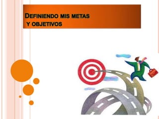El documento describe la relación entre metas y objetivos. Explica que un objetivo está compuesto por una serie de metas más pequeñas que, una vez alcanzadas, permiten lograr el objetivo final. También enumera características como ser creíbles, alcanzables, medibles y deseables que deben tener las metas para ser efectivas en el logro de los objetivos.