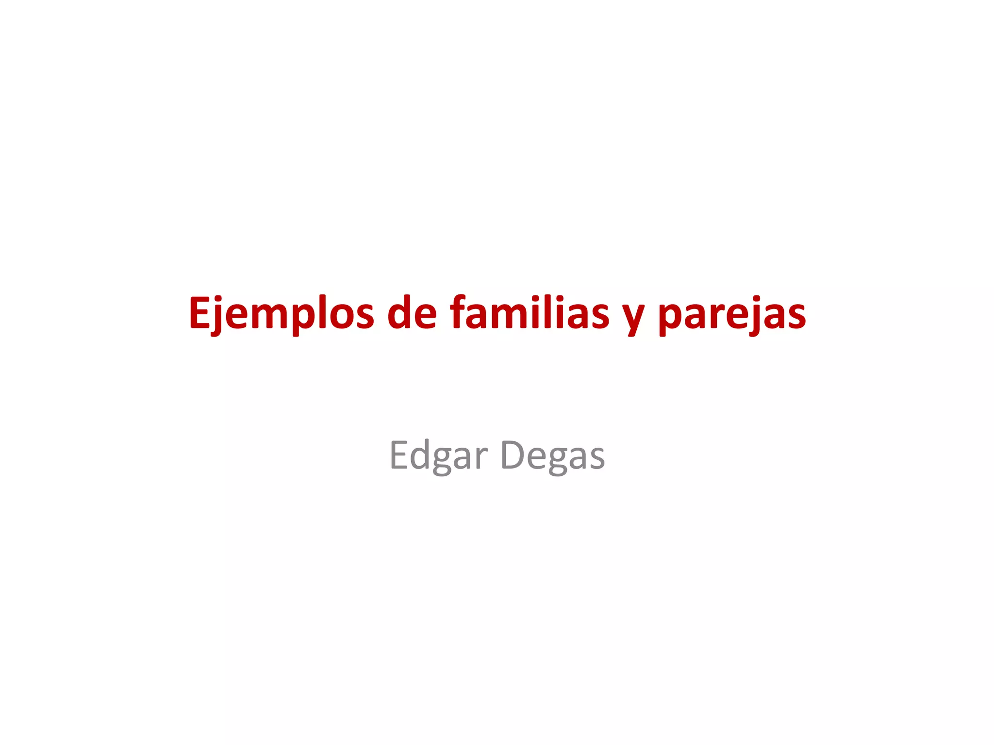 Las obras de Edgar Degas muestran varios ejemplos de familias y parejas, incluyendo "Monsieur and Madame Edouard Manet, 1868 69" y "Place de la Concorde, 1875". A pesar de la miseria o adicción, los sujetos en las pinturas de Degas están conectados entre sí.