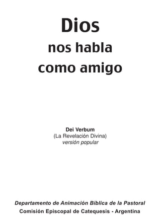 La revelación de Dios se transmite a través de la Biblia, la Tradición y el Magisterio. La Biblia contiene la Palabra inspirada de Dios escrita por autores humanos en distintos géneros literarios y épocas. Para entender completamente la Biblia, es necesario considerar el contexto histórico, social y cultural de los autores, así como también utilizar la interpretación autorizada de la Iglesia a través de la Tradición y el Magisterio. La revelación de Dios culmina en Jesucristo.