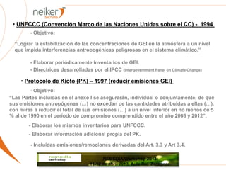 Este documento presenta un inventario de las emisiones de gases de efecto invernadero procedentes del sector agrícola, especialmente del ganado, en el País Vasco entre 1990 y 2011. El objetivo es estudiar la tendencia de las emisiones de metano y óxido nitroso a partir del ganado para mejorar las estrategias de mitigación. Se estiman las emisiones mediante la metodología del IPCC, utilizando factores de emisión específicos para la región y datos sobre cabezas de ganado, superficies y fertilizantes. Los resultados