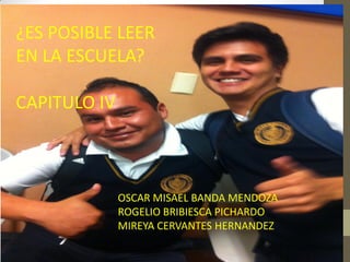 Este documento discute si es posible enseñar la lectura en la escuela. Argumenta que el enfoque actual de la lectura en la escuela es ficticio y alejado de la realidad, poniendo énfasis en una única interpretación y tratando la lectura como un objeto de enseñanza en lugar de un proceso significativo. También sugiere que la escuela podría convertirse en un ambiente propicio para la lectura si se crean las condiciones adecuadas y el maestro asume el rol de interprete.