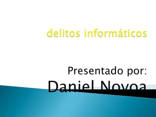 El documento describe varios tipos de delitos cibernéticos, incluyendo el uso de troyanos y software espía para robar información, estafas en subastas en línea, la divulgación inapropiada de contenidos como amenazas y extorsiones, la pornografía infantil en internet, la violación a los derechos de autor y la piratería en internet.