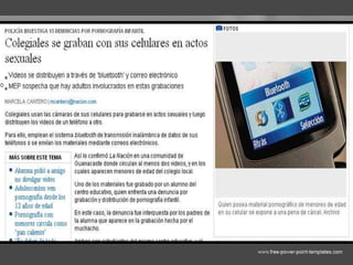 1) El documento describe varios delitos sexuales como la violación, relaciones sexuales con menores, abusos sexuales, corrupción y proxenetismo. 2) Define cada delito y especifica las penas legales asociadas. 3) También incluye consejos sobre la prevención del abuso sexual en niños y jóvenes.