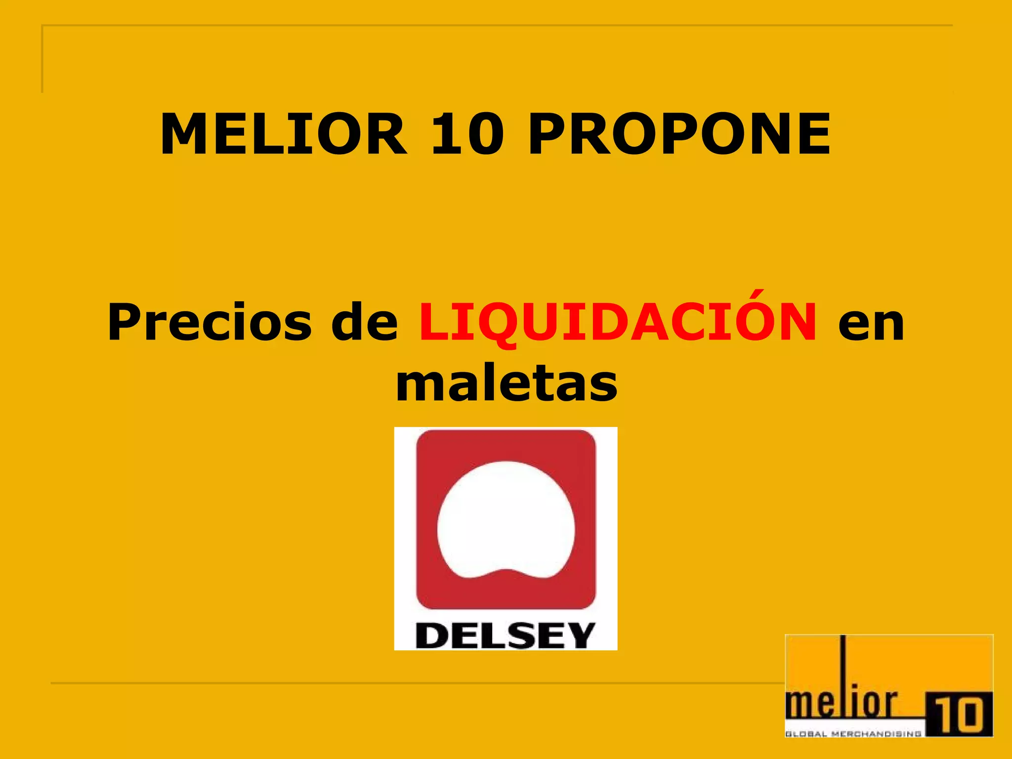Este documento presenta una lista de precios de liquidación para varios artículos de equipaje como neceseres, bolsos, maletas y mochilas de la marca MELIOR 10. Se proporcionan descripciones de cada artículo y se especifican los precios unitarios según la cantidad adquirida, con descuentos para compras mayores. También se incluye información sobre el IVA y los portes.