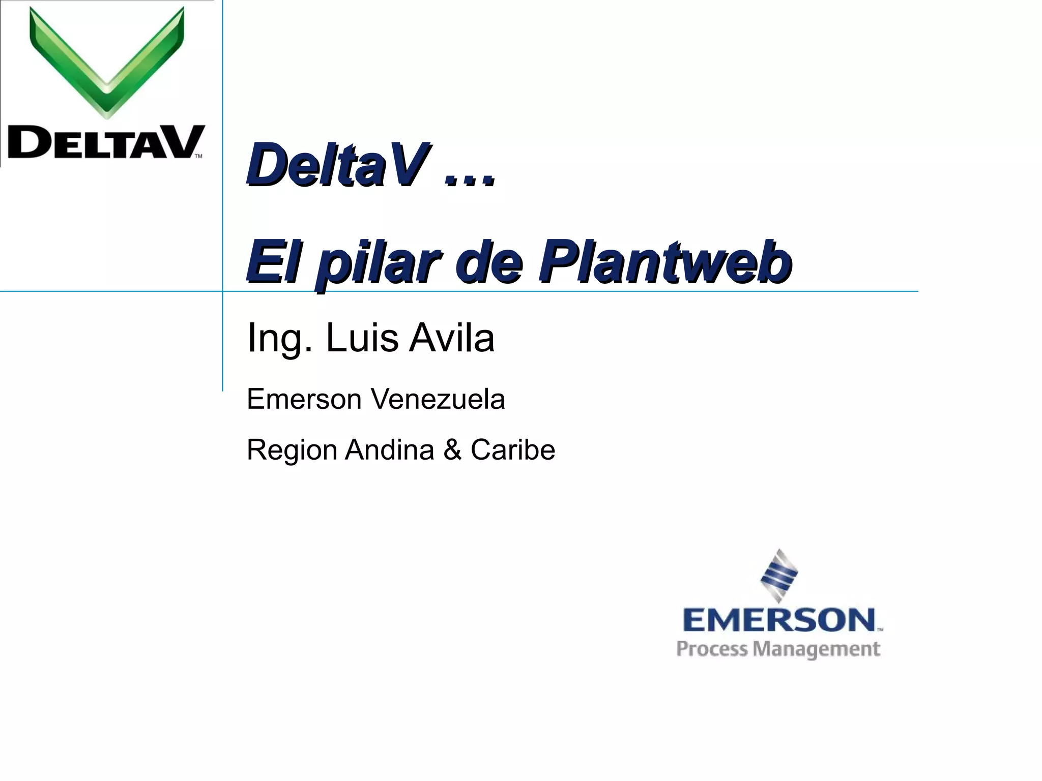 El documento describe las ventajas del sistema de control distribuido DeltaV de Emerson, incluyendo su arquitectura escalable, compatibilidad con estándares abiertos, facilidad de uso, y capacidades avanzadas de control y monitoreo. DeltaV ofrece una plataforma unificada para integrar dispositivos de campo, buses industriales y E/S tradicionales, brindando visibilidad y control a todo nivel de la planta.