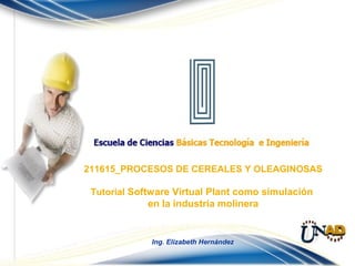 Este documento presenta un tutorial sobre el uso del software Virtual Plant para simular procesos en la industria molinera. Se describen tres prácticas simuladas: transporte neumático de sólidos, molienda de trigo y tamizado. El objetivo es aplicar los principios y conocimientos adquiridos durante el curso a través de casos reales simulados en el software. Se explican los equipos y materiales necesarios, así como los pasos para acceder a cada simulación y analizar las variables de entrada y salida. Finalmente, se proponen preguntas