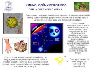 El documento describe la enfermedad del dengue, causada por el virus del dengue transmitido por la picadura del mosquito Aedes aegypti. Se manifiesta como dengue clásico o dengue hemorrágico, con síntomas de fiebre alta, dolores musculares y erupción cutánea. El ciclo de vida del mosquito vector incluye huevos, larvas, pupas e imago adulto. El dengue se transmite cuando un mosquito infectado pica a una persona sana después de picar a un infectado.