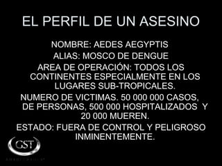 Este documento advierte sobre los peligros del mosquito Aedes aegypti, transmisor del dengue, y enfatiza la importancia de eliminar sus criaderos dentro y alrededor del hogar para prevenir la propagación de esta enfermedad. Describe las características del mosquito y del dengue, incluyendo sus síntomas y posibles consecuencias graves. Además, proporciona consejos sobre cómo identificar y destruir los criaderos comunes de este mosquito para proteger la salud de la familia.
