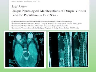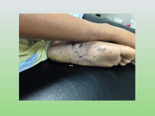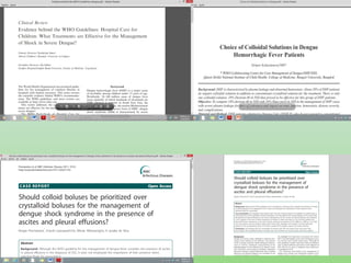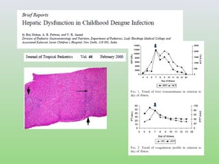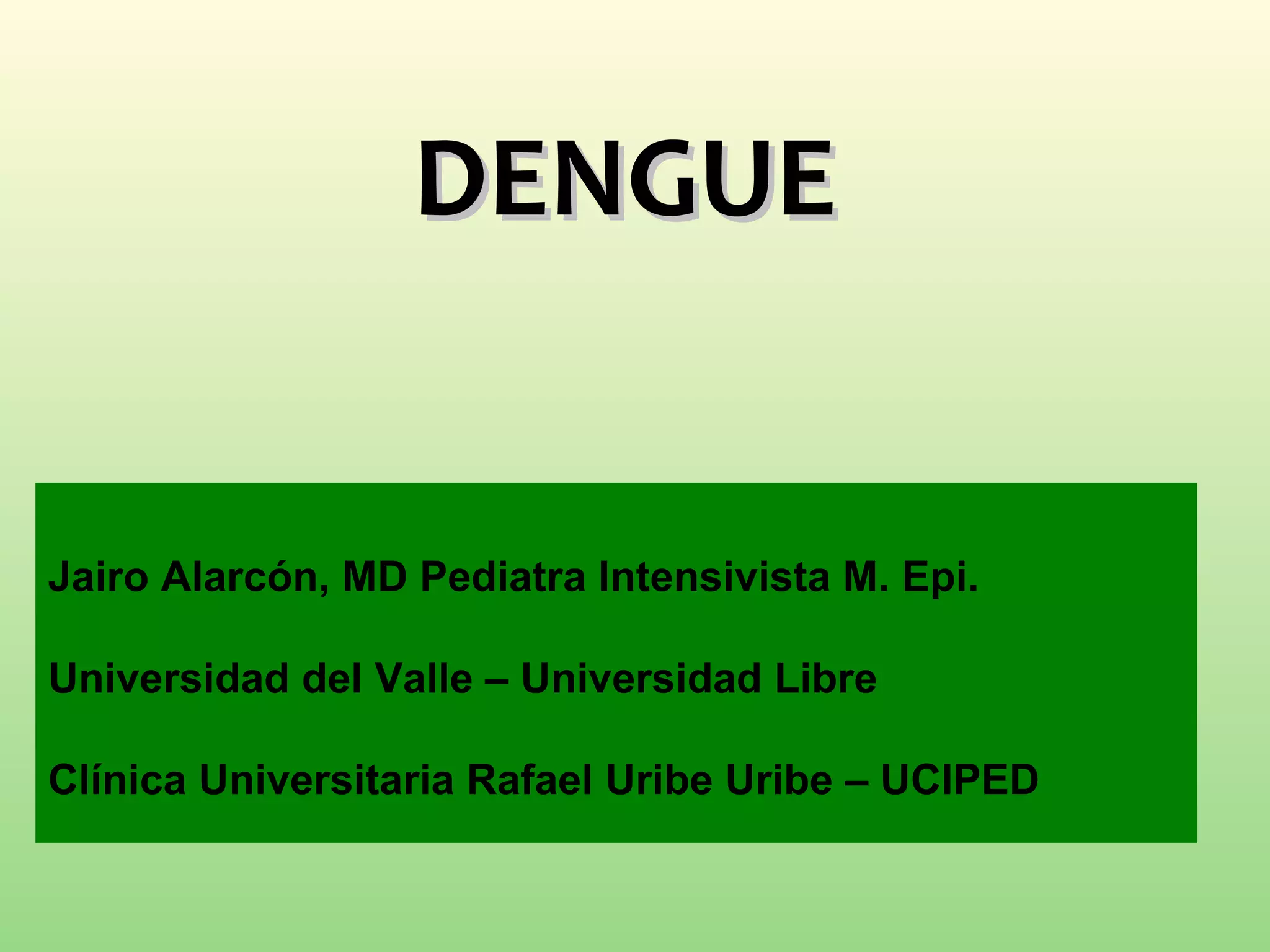 El documento presenta un análisis detallado de la situación del dengue en el Valle del Cauca en 2013, incluyendo estadísticas de casos y muertes, así como criterios para la clasificación y tratamiento de la enfermedad. Se discuten las manifestaciones clínicas y las complicaciones severas del dengue, destacando la importancia de la observación y una intervención clínica adecuada. Además, se enfatiza la necesidad de educación sobre los signos de alarma y un diagnóstico diferencial adecuado para mejorar los resultados en pacientes afectados.
