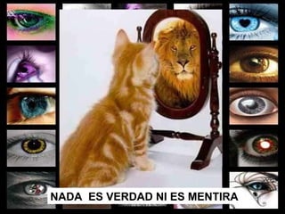 El documento expresa que la verdad es subjetiva y depende de la perspectiva desde la que se mire, ya que nada es inherentemente verdadero u falso sino que depende del cristal o lente a través del cual se observa.