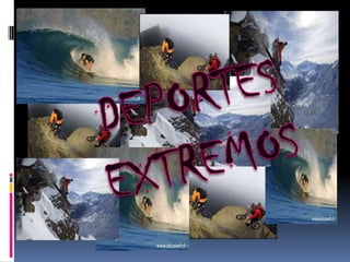 Los deportes extremos son actividades que implican un alto nivel de riesgo, haciéndose en condiciones físicas y mentales exigentes, abarcando desde escaladas hasta deportes de aventura acuática. Practicados por aventureros y deportistas de alto rendimiento, incluyen disciplinas como parkour, surf, slackline, barranquismo, bungee, paracaidismo y descenso de ríos. Estas actividades son definidas por su potencial de peligro y la necesidad de habilidades específicas para manejarlas adecuadamente.
