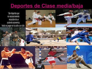 El documento compara el deporte amateur y profesional, y analiza las desigualdades de oportunidades en el deporte entre clases sociales. Propone que el gobierno invierta más en deportes para barrios carenciados a través de clubes gratuitos y eventos benéficos que recauden fondos.