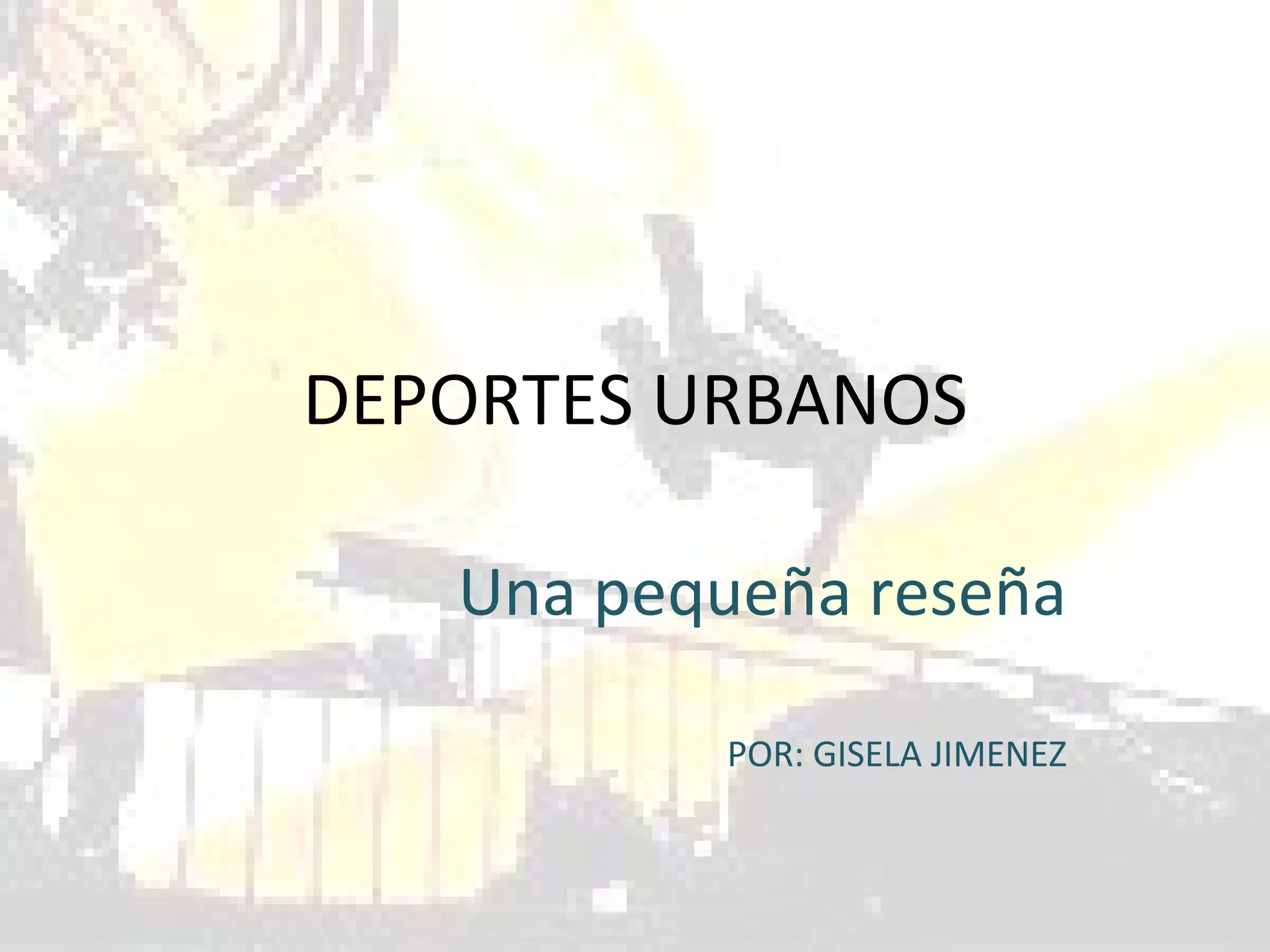 Este documento define los deportes urbanos como actividades deportivas que se practican en entornos urbanos y aprovechan los obstáculos de la ciudad. Describe varios deportes urbanos populares como el fútbol callejero, el parkour, el skateboard, los patines, la bicicleta, el parapente extremo y el rapel. También presenta un nuevo deporte llamado hockern que implica realizar acrobacias sentado en una banqueta pequeña de plástico.