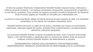 Este documento describe la oportunidad de negocio independiente de Herbalife Nutrition. Explica que los Distribuidores Independientes pueden ganar ingresos adicionales vendiendo productos Herbalife Nutrition o patrocinando a otros Distribuidores. También promueve un estilo de vida activo y saludable apoyado por los productos Herbalife Nutrition.