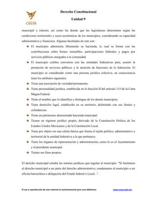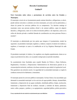 El municipio puede realizar convenios con otros municipios y particulares para prestar servicios públicos. El municipio está administrado por un presidente municipal, regidores y síndicos elegidos popularmente por un periodo de tres años. El municipio presta servicios públicos como agua potable, drenaje, alcantarillado, alumbrado público, recolección de basura y cementerios. El municipio administra su hacienda formada por impuestos sobre bienes inmuebles, participaciones federales y pagos por servicios.