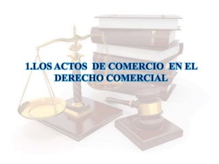 Este documento presenta información sobre los orígenes y evolución del derecho comercial, incluyendo: 1) Los orígenes del comercio en las tribus antiguas y la invención de la moneda, 2) El desarrollo del derecho mercantil durante la Edad Media como un derecho consuetudinario, 3) La clasificación de los actos de comercio y las capacidades y prohibiciones para ejercer el comercio según la ley peruana.