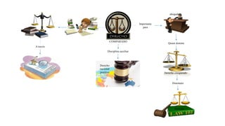 Este mapa mental presenta información sobre la importancia del derecho comparado como disciplina auxiliar del derecho nacional positivo. El derecho comparado permite al abogado comprender mejor el derecho a través del estudio de sistemas jurídicos diferentes. Aquellos que dominan el derecho comparado también dominarán mejor el derecho. El mapa incluye referencias a sitios web sobre introducciones al estudio del derecho comparado.
