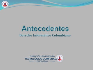 El documento define la informática jurídica como una disciplina interdisciplinaria que estudia la aplicación de la informática general a la recuperación de información jurídica. Explica que la informática jurídica se divide en tres categorías: jurídica documental, control y gestión, y meta documentaría. También define el derecho informático como el conjunto de leyes y principios aplicables a los hechos y actos derivados de la informática, ya sea por fenómenos vinculados o provocados por el hombre. Finalmente, resalta algunos hitos en el des
