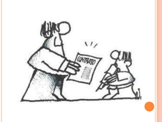 El derecho laboral regula las relaciones entre empleadores y empleados, buscando proteger a los trabajadores como parte débil de la relación a través de normas como la ley de contrato de trabajo y convenios colectivos. Sus principales fuentes son la constitución, tratados internacionales, códigos laborales, leyes especiales, reglamentos y contratos individuales y colectivos de trabajo.