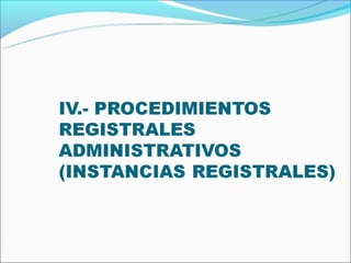 Este documento presenta una introducción al derecho registral peruano. Explica la estructura legislativa del derecho registral peruano, incluyendo las leyes y reglamentos especiales, y la organización registral establecida por la Ley 26366. También describe la estructura orgánica de la Superintendencia Nacional de los Registros Públicos y sus órganos desconcentrados, así como los principales procedimientos e instituciones registrales peruanas.